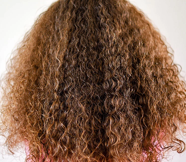 The before look: super dry, frizzy and so many products in her hair to tame it.
